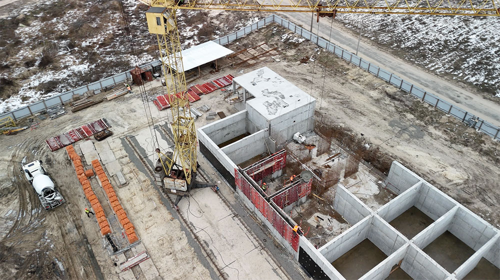 Construction of sewage treatment facilities is underway on the lands of the village of Mykulychi, Buchansky district, Kyiv region. This project provides for the new construction of a full-cycle sewage treatment facility, the capacity of the facility is 1,500 m3/day.