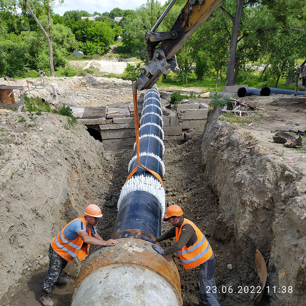 Within the framework of the Contract in the city of Zhytomyr, polyethylene pipes with a diameter of Ø1000 mm are currently being laid to provide a modern drainage system for the entire population of the city.