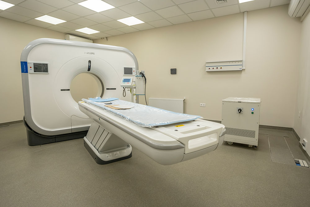 Diagnostic department on the first floor: Computer tomography scanner, X-ray machine with the ability to diagnose people with disabilities. An MRI room with a "quench" pipe outlet is also provided.